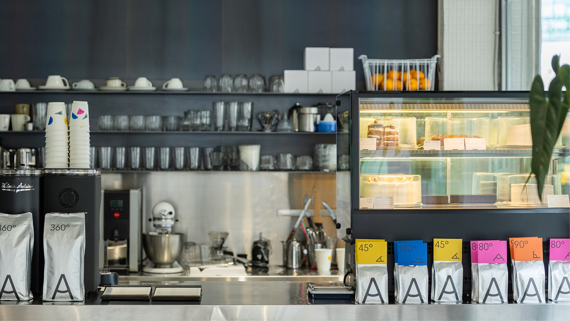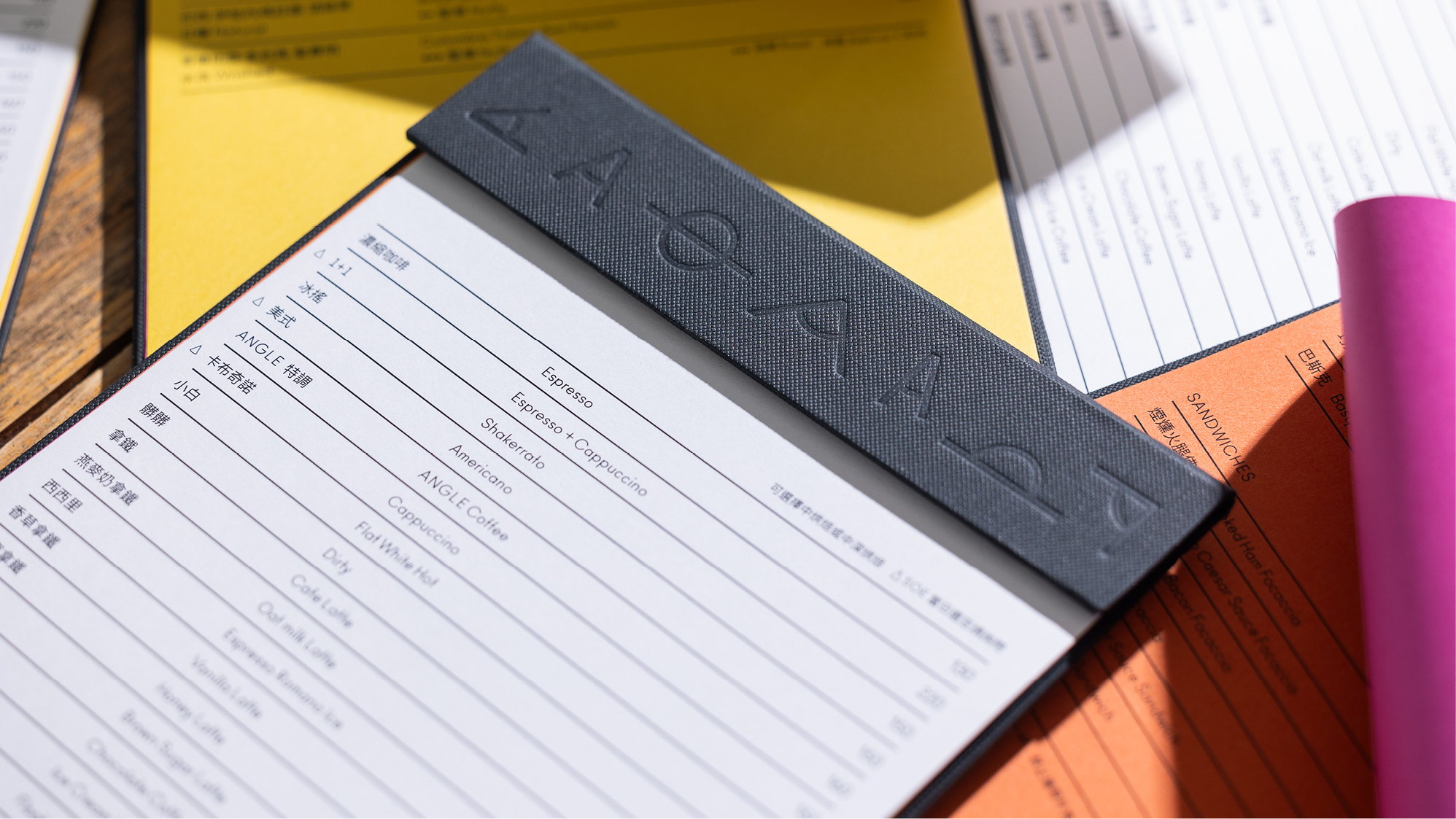 The different A-ngles allow for a playful application of the identity. Staying consistent, but not boring. Popping colours softening the cool and reduced interior style of the premises, bringing some warmth and fun!