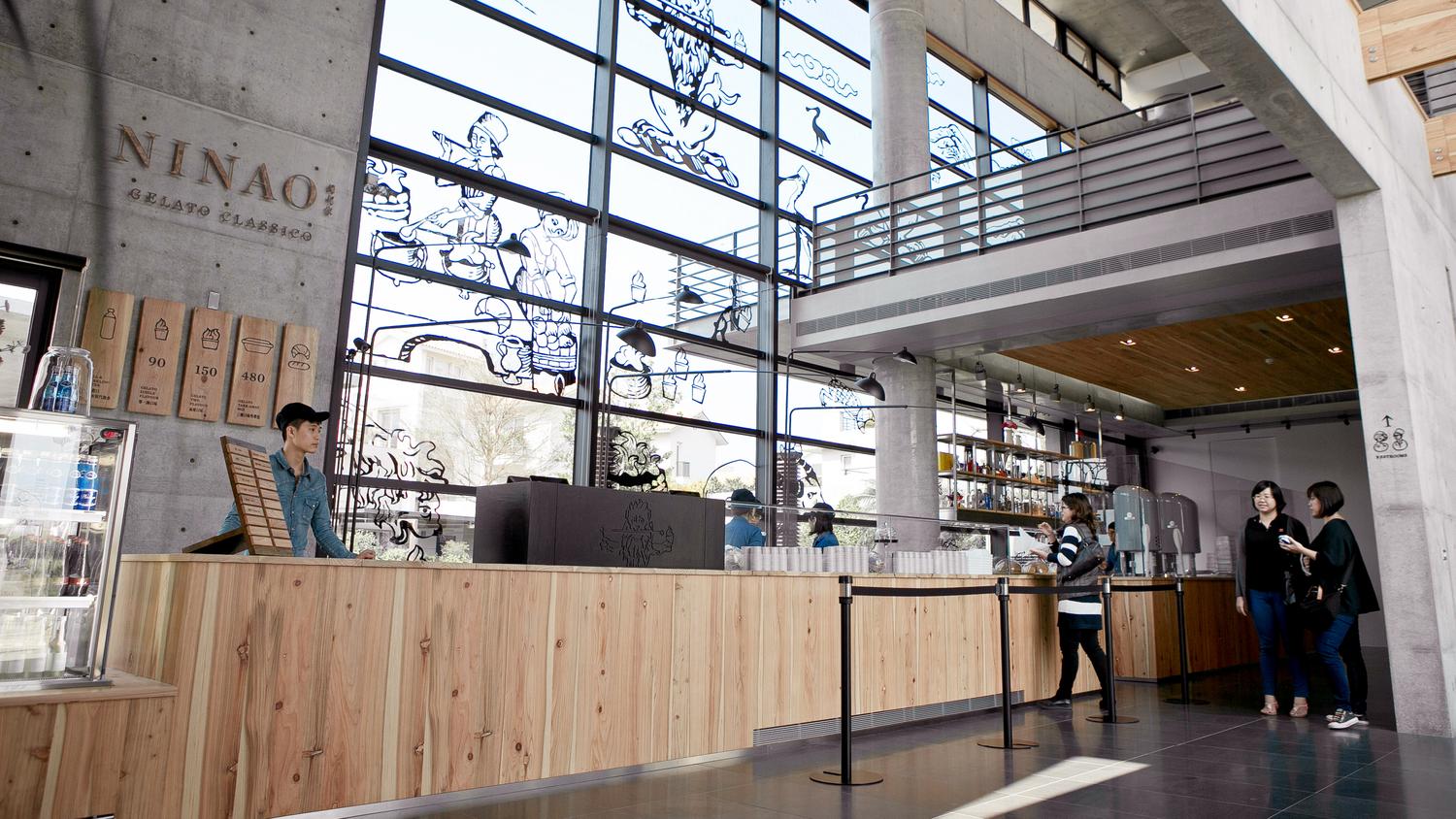 NINAO’s logotype is the Lion with a sword in the mouth. You see this kind of lions everywhere in Tainan’s Anping district, they are said to protect the buildings and people from harm. Ninao is selling italian gelato, so we created a European version of the sword lion. In the same way, we adapted more medieval drawings to tell a little story of ice cream…